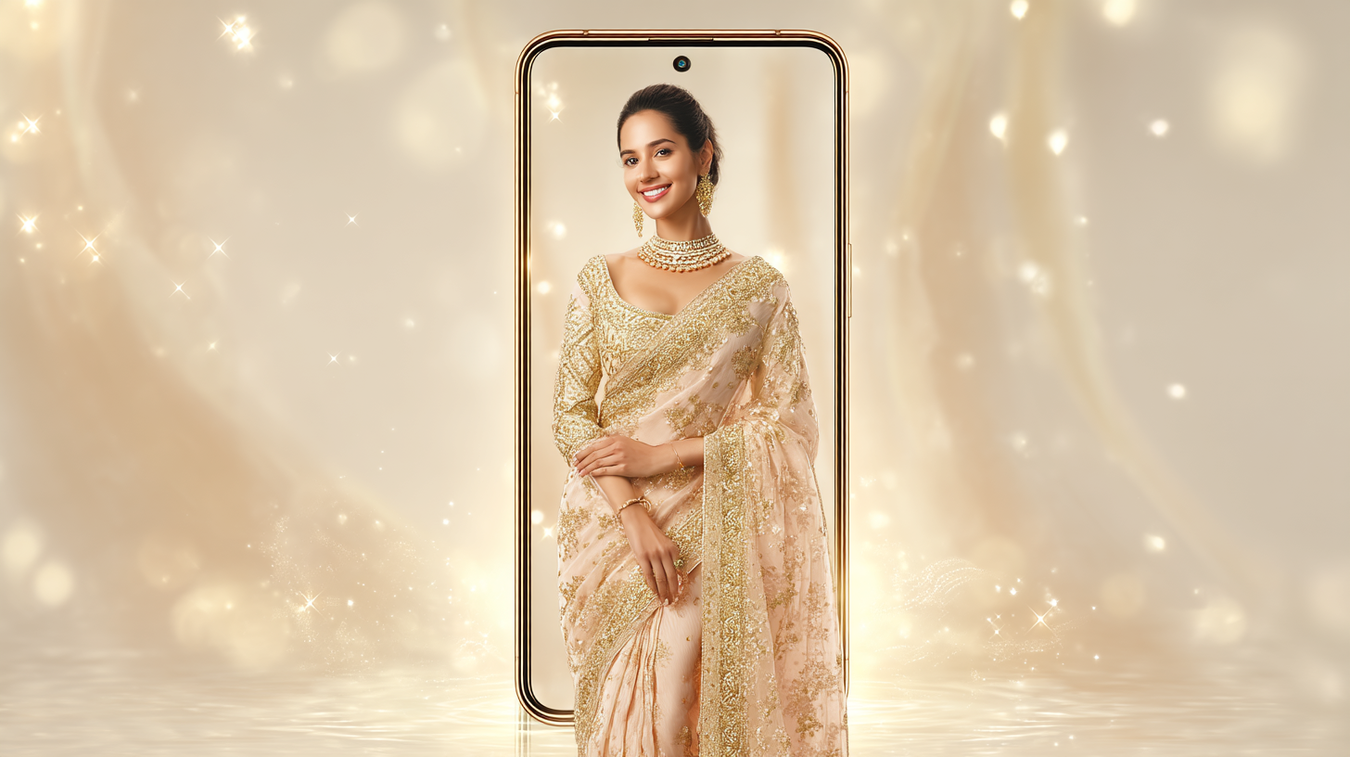 No more guessing! Click your favorite saree, send us your selfie, and get your personal try-on in minutes 💃🔥
