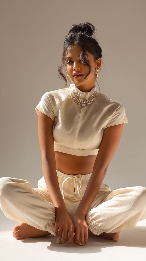 These cream solid co-ords are minimal yet chic, crafted in a breathable cotton blend. Perfect for timeless elegance and styling flexibility. Try ou...