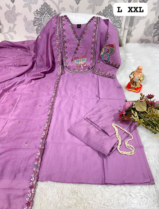 Lavender Butterfly Embroidered Kurti Set with Matching Dupatta