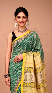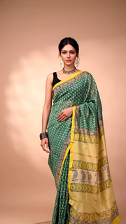 Green Maheshwari Silk Saree with Yellow Pallu