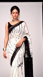 Classic Black & White Shibori Tie-Dye Saree